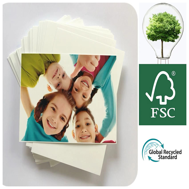 Oferuje błyszczące wykończenie, łącząc certyfikat ekologiczny z doskonałą atrakcyjnością wizualną druku atramentowego.